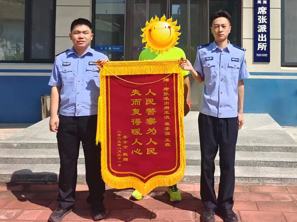8月31日,分局席张派出所接到群众求助称,自己在前往公墓祭奠亲人时不慎将随身携带的背包遗失,包内装有黄金首饰、钻戒及重要个人物品。 接到求助后,席张派出所值班民辅警迅速行动,立即展开排查工作。通过调取监控视频、走访调查,以及多方协作配合,民警最终成功锁定背包遗失位置,并将所有遗失物品如数寻回,为群众避免了重大经济损失。 9月1日,失主为席张派出所送来一面印有“失而复得暖人心,人民警察为人民”的锦旗,对派出所民辅警认真负责、高效为民的工作作风表示高度赞扬和衷心感谢。(雷峻)