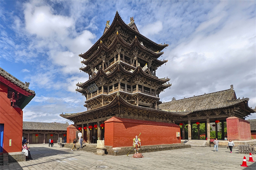 万荣县飞云楼景区日前获评国家4A级旅游景区。被誉为“中华第一木楼”的飞云楼,位于全国重点文物保护单位万荣东岳庙,是始建于唐代的著名纯木质结构建筑。近年来,万荣县在飞云楼景区新建仿古博物馆、美术馆和完善游客中心等旅游服务设施的基础上,又更新扩建沿途街道和文化广场,实施景区配套设施升级改造,实现了文物保护与旅游体验的双向提升,让千年古建筑焕发出现代活力。图为1月4日拍摄的飞云楼景区。 特约摄影 李克荣 摄
