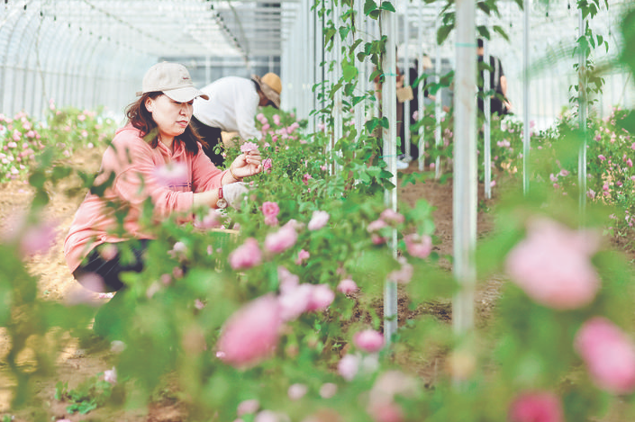 5月中旬,垣曲县清源村食用菌基地内花香四溢,大棚内的玫瑰花竞相绽放、娇艳欲滴,从新鲜的空气中隐隐能嗅到一股独特的玫瑰花香,村民们在花田里忙着采摘,一派繁忙景象。在玫瑰花的上方,八月瓜长势正旺。这是该基地继3月底羊肚菌喜获丰收后,再一次迎来了丰收季。