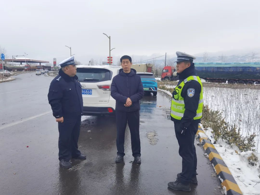 1月16日,政府副县长、公安局党委书记张建林深入横水高速口督导检查雪天道路交通安全管理工作,并向坚守在冰雪一线的执勤民辅警进行慰问,党委委员、交通管理大队大队长韩宗利陪同。