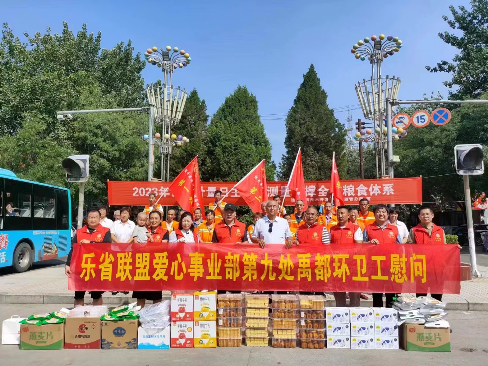 6月27日,在乐省联盟爱心事业部戴宝平总监的统一部署下, 由爱心事业部第九处处长李丰义,副处长王丽丽、马成勃组织爱心商家和志愿者慰问运城市经济开发区禹都市场的环卫工人,并为他们赠送了慰问品,对他们长期以来的辛勤劳动表示感谢。